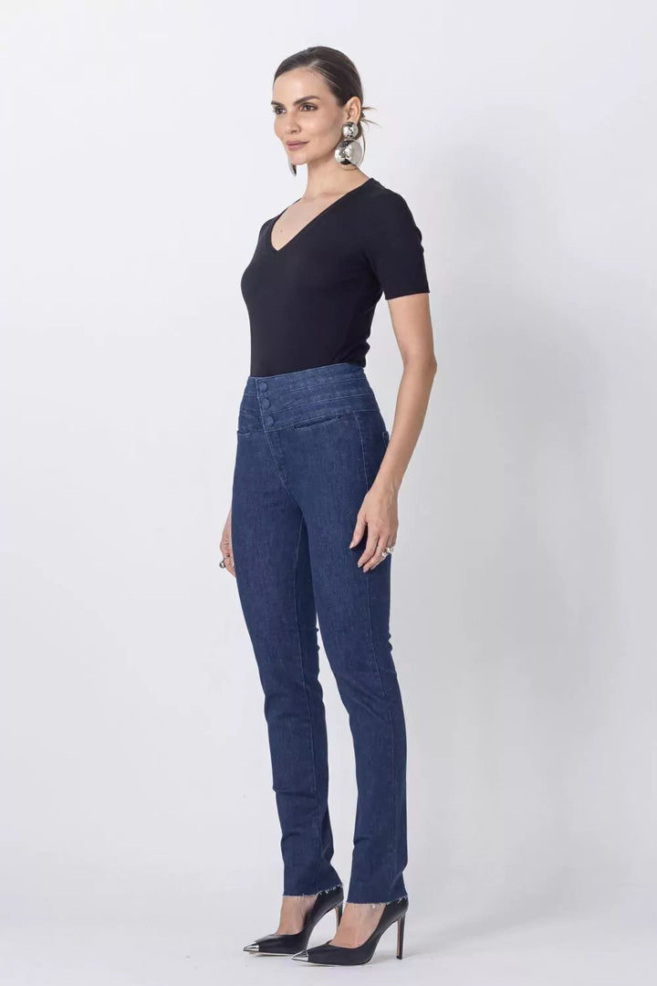 The Andreza Skinny Pants exude luxury and taste with their sleek, dark wash and high triple buttons on the waist. Crafted with a sophisticated design, these pants will elevate any outfit. Step into elegance and embrace the exclusivity of these premium pants.