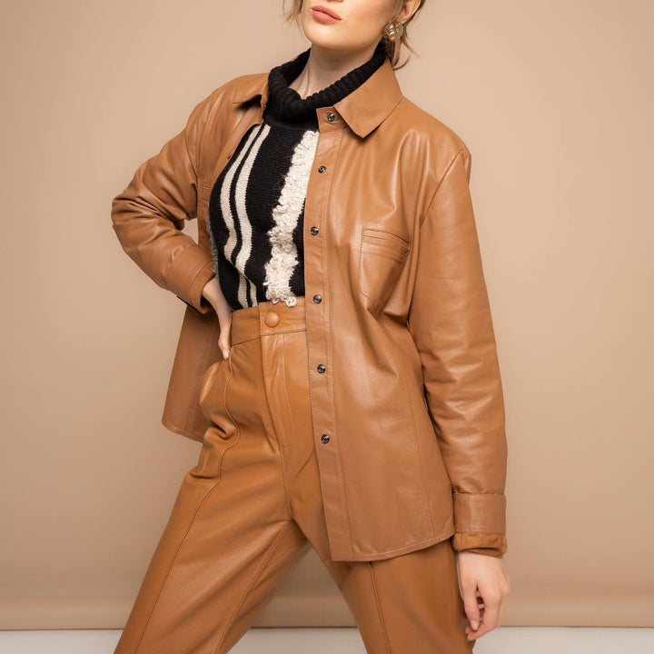 You will fall in love with our Jordana Leather Pants. The genuine off-white leather exudes sophistication, while the elastic waist provides comfort. With a straight fit, these pants are perfect for any occasion, adding an element of elegance to your wardrobe.