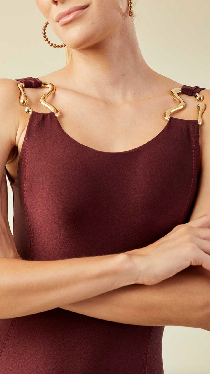 Upgrade your swim game with our Premium Swimsuit Texture Barolo with Metal Details. This one-of-a-kind piece exudes luxury and comfort with its Barolo texture and buckle details. Get ready to turn heads at the pool or beach with this exclusive swimsuit.
